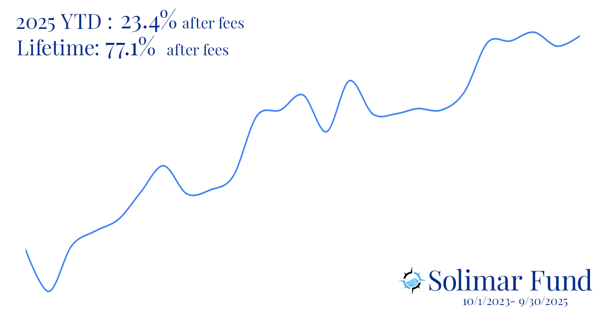 Solimar Fund has returned 23.4% after fees in 2025 (1/1/25-9/30/25).